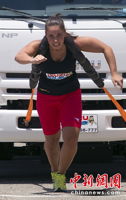 6月8日,以色列在海濱城市特拉維夫舉行了拉卡車大賽。比賽要求將一臺(tái)7.5噸的卡車?yán)?0米以外,用時(shí)最短者為勝者。該項(xiàng)賽事不但吸引了世界上眾多男性大力士,更有許多女性大力士出戰(zhàn)。圖片來源:中國新聞網(wǎng)