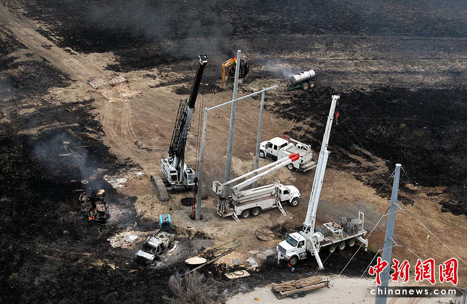 當(dāng)?shù)貢r間6月7日,美國得克薩斯州北部發(fā)生一起天然氣管道爆炸事件。幾名工人在進(jìn)行挖掘作業(yè)時觸及鋪設(shè)在地下的天然氣管道,引發(fā)爆炸及大火,造成至少一名工人死亡,7人受傷。圖片來源:中國新聞網(wǎng)