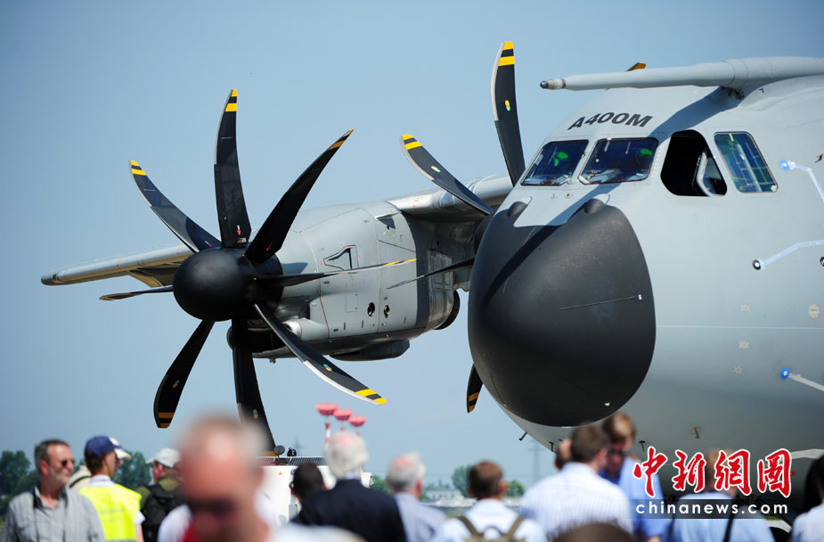 6月8日,德國(guó)柏林,一架空中客車A400M軍用運(yùn)輸機(jī)在2010年柏林國(guó)際航空展上試飛。