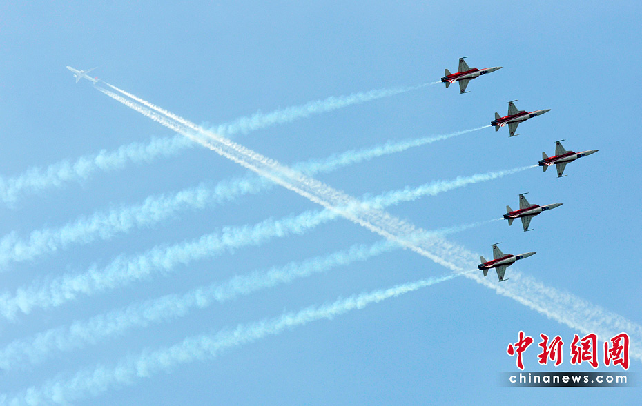 2010年柏林國際航空展于當?shù)貢r間6月8日在德國柏林舍內(nèi)費爾德機場開幕。9日,瑞士飛行表演隊在航展上演了精彩的飛行表演。圖片來源:中國新聞網(wǎng)