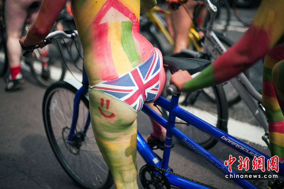6月12日,在英國倫敦、墨西哥首都墨西哥城等地舉行了一年一度傳統(tǒng)的“裸體騎自行車大賽”。