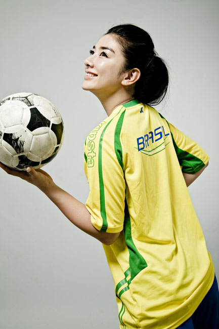 近日,黃奕身穿巴西隊球衣拍攝了一組世界杯足球?qū)懻妫瑸槟戏鞘澜绫炔省?/p>