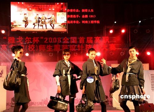 12月11日晚,中國高職院校服裝設(shè)計(jì)技能大賽在揚(yáng)州舉行。共有來自江蘇、安徽、河北、江西、湖北、廣西、北京、重慶、新疆、內(nèi)蒙古等10多個(gè)省市自治區(qū)的53所高職高專院校設(shè)計(jì)作品911件,經(jīng)專家組初評,有64個(gè)系列作品入圍決賽,最終評選出2個(gè)金獎(jiǎng)、12個(gè)銀獎(jiǎng)、24個(gè)銅獎(jiǎng)和最佳效果圖獎(jiǎng)、最佳工藝獎(jiǎng)等6個(gè)單項(xiàng)獎(jiǎng)。中新社發(fā) 崔佳明 攝