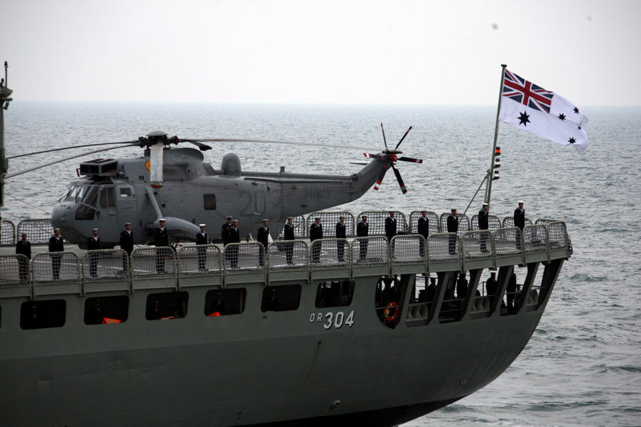 中國(guó)歷史上的首次多國(guó)海軍檢閱活動(dòng)四月二十三日下午在青島附近黃海海域舉行。中國(guó)國(guó)家主席、中央軍委主席胡錦濤乘閱兵艦“石家莊”號(hào)導(dǎo)彈驅(qū)逐艦,檢閱中國(guó)海軍的潛艇、水面艦艇、海軍航空兵和海軍陸戰(zhàn)隊(duì)等作戰(zhàn)兵種,并檢閱了來(lái)訪的十四個(gè)國(guó)家的二十一艘艦艇。圖為參加檢閱的外國(guó)軍艦。中新社發(fā) 張雷 攝