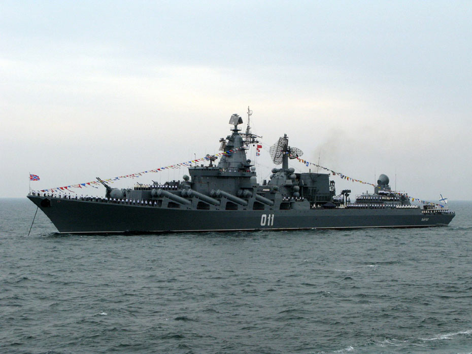4月23日下午,為紀(jì)念中國(guó)人民解放軍海軍成立60周年而舉行的海上閱兵在青島附近黃海海域舉行。圖為舷號(hào)011俄羅斯“瓦良格”號(hào)導(dǎo)彈巡洋艦。 中新社發(fā) 琥珀旺旺 攝