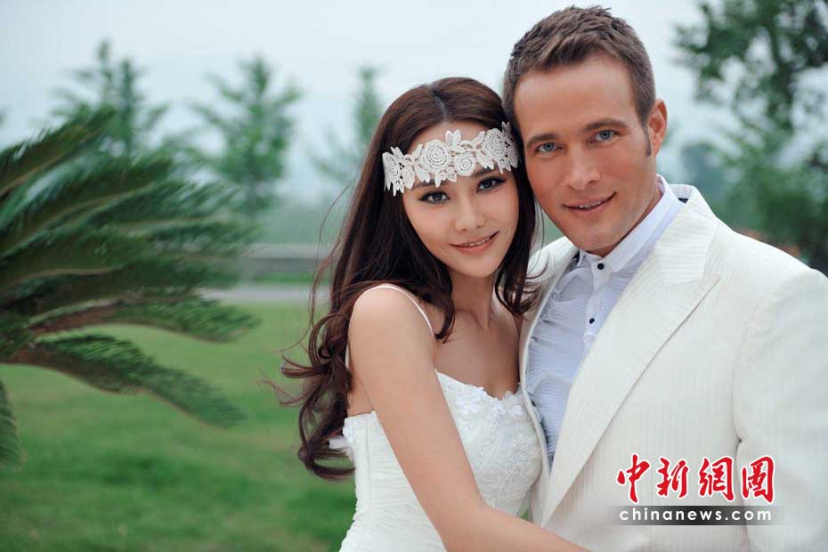 著名女星馬雅舒與澳洲籍男友詹姆斯·羅伯特·海耶斯的結婚照曝光,兩位新人幸福洋溢于表,頗為登對。