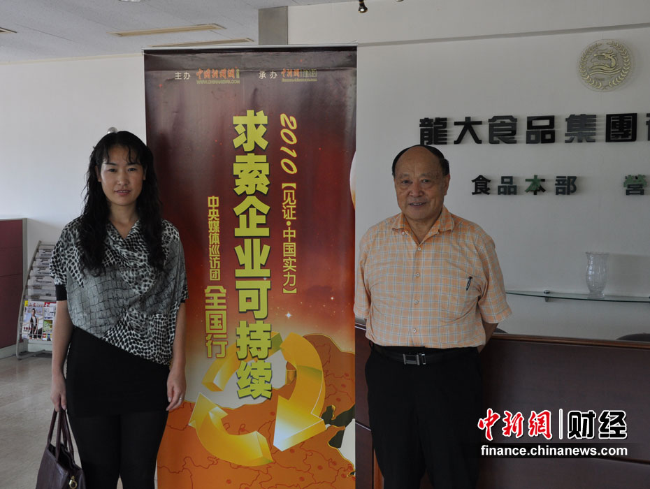 由中國(guó)新聞網(wǎng)財(cái)經(jīng)中心主辦,旨在挖掘、展示、報(bào)道、求索中國(guó)經(jīng)濟(jì)可持續(xù)、中國(guó)企業(yè)可持續(xù)、中國(guó)產(chǎn)業(yè)可持續(xù)發(fā)展軌跡的“2010見證•中國(guó)實(shí)力——求索企業(yè)可持續(xù)全國(guó)行”活動(dòng)正式啟動(dòng),山東龍大食品集團(tuán)有限公司成為本次活動(dòng)的第一站。人民日?qǐng)?bào)、中國(guó)日?qǐng)?bào)、中國(guó)經(jīng)濟(jì)時(shí)報(bào)、中華工商時(shí)報(bào)、中國(guó)食品報(bào)、中國(guó)青年報(bào)、中國(guó)企業(yè)報(bào)、中國(guó)畜牧雜志等中央媒體參與并對(duì)本次活動(dòng)進(jìn)行了報(bào)道。圖為中國(guó)食品質(zhì)量報(bào)主任江青與龍大集團(tuán)董事長(zhǎng)宮學(xué)斌合影。