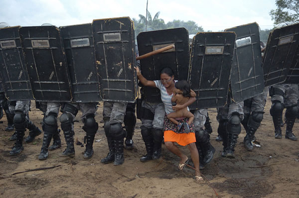 3月11日,在巴西馬瑙斯市郊,一名“無土地農(nóng)民運(yùn)動組織”婦女試圖反抗武裝警察的驅(qū)逐。巴西無土地農(nóng)民組織與警察發(fā)生沖突,反抗警方將他們驅(qū)逐出自己的住所。