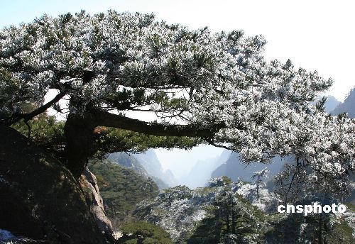 12月6日,安徽黃山風(fēng)景區(qū)迎來(lái)今年入冬以來(lái)第一場(chǎng)雪。7日,雪止轉(zhuǎn)晴,氣溫驟降,黃山始信峰景區(qū)出現(xiàn)晶瑩剔透的雪松奇觀(guān),“處處皆是琉璃界、時(shí)時(shí)身在水晶宮”的奇妙感覺(jué),是一道獨(dú)具魅力的迷人景色,令游客嘆為觀(guān)止。中新社發(fā) 方也廣德 攝