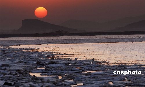 2月27日傍晚,在遼寧大連北部海域夏家河子,晚霞里海面漂浮著大片冰凌。場面十分壯觀。當(dāng)日,該市最低氣溫零上2度,受氣溫回升影響,該市北部海域封凍的冰層已開始融化。中新社發(fā) 劉德斌 攝