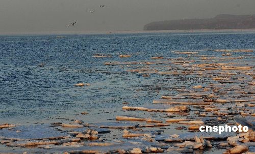 美圖:晚霞里大連海面漂冰凌