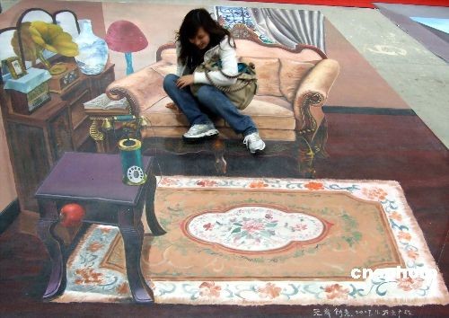 3月19日,第33屆禮品工藝品暨家居用品展正在上海舉行。展會(huì)中,幾幅立體畫(huà)因其獨(dú)特的三維立體效果,幾乎能“以假亂真”,讓人產(chǎn)生視覺(jué)錯(cuò)覺(jué),吸引了不少參觀者。中新社發(fā) 井韋 攝