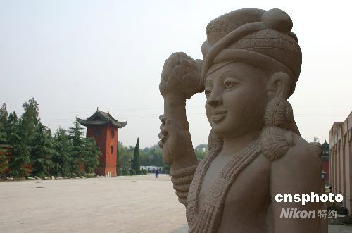 被譽為中印兩國“總理工程”的河南洛陽白馬寺印度佛殿,目前正在最后的裝修沖刺階段。近日,佛殿已經(jīng)初露芳容。佛殿占地3450平方米,2006年4月動工,2007年9月開始殿內(nèi)裝修。預(yù)計一個月后即可全部完工。中新社發(fā) 聽伊 攝