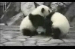 記者向圍墻下望去,水泥地上,兩只胖乎乎的大熊貓扭打在一起,其激烈程度,大有一山不容二“貓”之勢(shì)。一只個(gè)頭稍大的熊貓,一直不占上風(fēng),被體型稍小者幾下就撲倒在地,差一點(diǎn)翻落到旁邊的深溝里。兩只大熊貓手腳并用,你翻我滾抱成一團(tuán),讓人看不清頭在哪兒,腳在哪兒。打到激烈之處,一只大熊貓還立起前肢向?qū)Ψ綋淙,把?duì)方后背上的皮毛揪起老高。