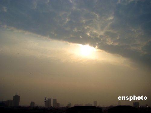 2月21日傍晚時(shí)分,揚(yáng)州上空出現(xiàn)“陰陽(yáng)天”奇觀,一半是萬(wàn)里無(wú)云的晴朗天空,另一半天空則被厚實(shí)云層遮蓋,界線清晰分明,蔚為壯觀。中新社發(fā) 陳中秋 攝
