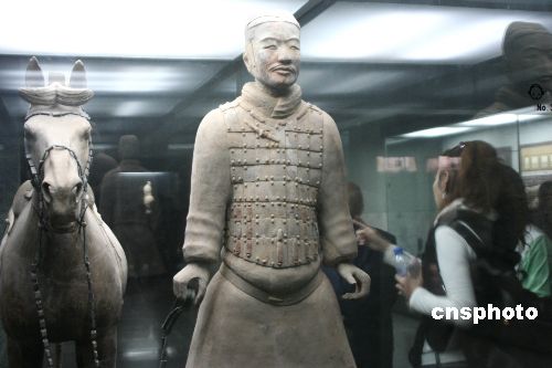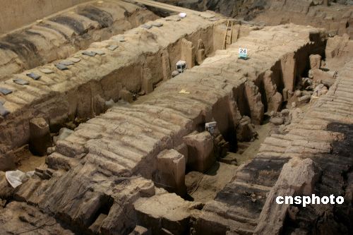 10月24日獲悉,已開放13年的西安兵馬俑二號坑陳列廳將于2007年11月1日起封館,對展廳屋頂漏雨情況進行全面處理。秦始皇兵馬俑二號坑總面積約8000平方米,是3個坑中最為壯觀的軍陣,目前,二號坑中發(fā)現(xiàn)的文物2000件,其中將軍俑、鞍馬俑、跪姿射俑為首次發(fā)現(xiàn)。二號坑陳列廳于1988年動工修建,1994年建成對外開放。此次修館是對二號坑屋頂進行翻修,將原屋頂揭掉重新建造屋頂。二號坑從11月1日起封閉,封館之后文物將陸續(xù)被轉(zhuǎn)移到文物展覽廳等地方。在文物搬離之后,為保證坑內(nèi)還未發(fā)掘文物的安全,二號坑將全部回填、嚴密覆蓋。這一工程大約為期5個月,預(yù)計到2008年4月20日,二號坑屋頂將處理完畢,“五一”之前再向游客開放。中新社發(fā) 程千俊 攝