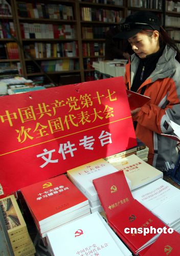 十一月二日,一年一度的北京秋季書(shū)市拉開(kāi)帷幕。來(lái)自中國(guó)書(shū)店等五百余家參展商為廣大讀者奉獻(xiàn)上了二十余萬(wàn)種圖書(shū)“大餐”。中國(guó)青海熱貢藝術(shù)展也首次亮相書(shū)市。在書(shū)市的首日,有關(guān)十七大的圖書(shū)也成為熱銷(xiāo)圖書(shū)之一。中新社發(fā) 任海霞 攝