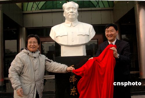 11月6日,毛澤東主席女兒李訥同志來到了紅色企業(yè)——河北晶牛集團。她代表毛澤東同志親屬為晶牛新落成的毛澤東塑像揭幕。中新社發(fā) 洪生 攝