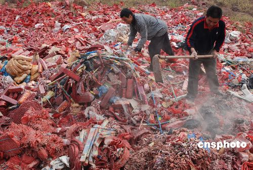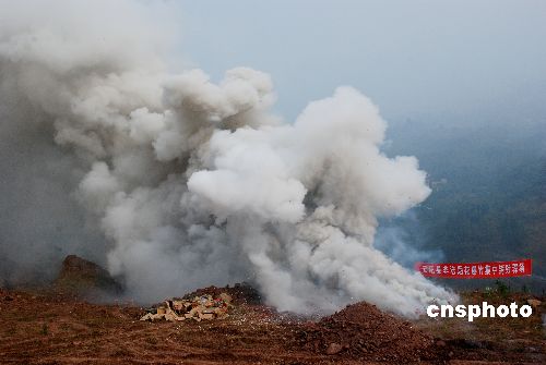 11月8日,重慶市云陽(yáng)縣集中銷毀了620萬響非法生產(chǎn)和經(jīng)營(yíng)的煙花爆竹,消除了安全隱患。這些煙花爆竹是該縣在全國(guó)消防安全日前夕,對(duì)全縣43個(gè)鄉(xiāng)鎮(zhèn)進(jìn)行排查時(shí)收繳的。中新社發(fā) 劉小洋 攝
