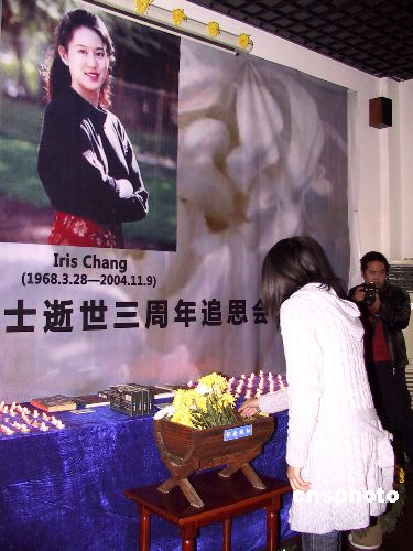 十一月九日,美國華裔女作家張純?nèi)缡攀廊苣辍=K省社科院專家、南京高校歷史系教授、南京大屠殺幸存者后代、在寧就讀的大學(xué)生等社會各界人士,共聚南京民間抗日戰(zhàn)爭紀(jì)念館,在這里緬懷追思這位美麗堅強的女性。中新社發(fā) 朱曉穎 攝