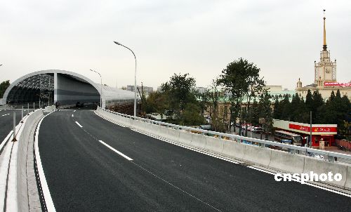 11月13日,北京動(dòng)物園上空的隔音空中隧道安裝工程正在進(jìn)行中。據(jù)了解,這條隔音隧道完成后將使北京動(dòng)物園里的動(dòng)物免受噪音干擾。高架路長(zhǎng)約1800米。為避免給動(dòng)物帶來噪音,經(jīng)過動(dòng)物園上空長(zhǎng)約千米的橋面全部裝上了半橢圓形隔音屏。這是北京第一條全封閉隔音屏道路。中新社發(fā) 鄭雄增 攝