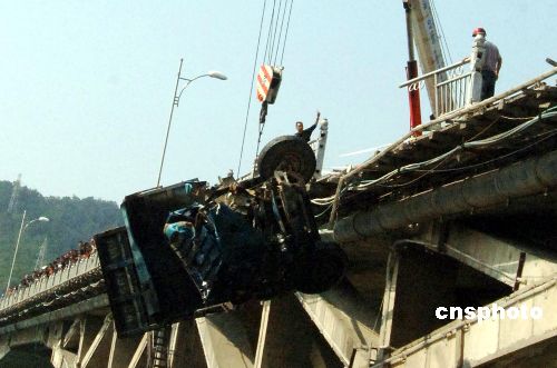 十一月十四日,營救人員啟動大型吊車正在將一輛墜入閩江的車輛打撈上岸。當(dāng)天凌晨四時許,一輛從福州建新鎮(zhèn)開往鼓樓區(qū)方向的微型小貨車,行駛至洪山橋路面時與另一輛從相反方向駛來的運沙車相撞后墜入閩江中,至少造成兩名司機(jī)死亡。福州市公安、消防等部門緊急出動,組織營救,啟動大型吊車先后將兩輛墜江車輛和一名遇難司機(jī)尸體打撈上岸。 中新社發(fā) 劉可耕 攝