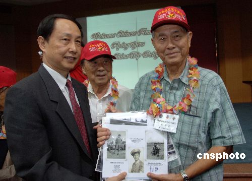 “2007美國(guó)華裔飛虎隊(duì)老兵及家眷回鄉(xiāng)訪問(wèn)團(tuán)”11月15日抵粵參觀訪問(wèn)。訪問(wèn)團(tuán)將在廣州、江門(mén)、新會(huì)、臺(tái)山等地進(jìn)行省親活動(dòng),并向廣東華僑博物館等廣東省三家博物館單位捐贈(zèng)華裔飛虎隊(duì)老兵文物,八十三歲的老兵阮福志向省華僑博物館捐贈(zèng)珍貴的歷史照片。中新社發(fā) 梁永強(qiáng) 攝