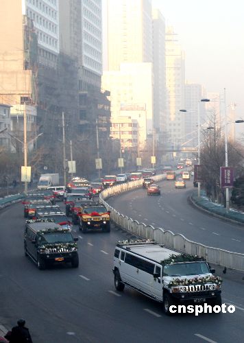11月24日早8點左右,一隊由38輛悍馬越野車與8輛豐田霸道組成的迎親車隊從遼寧沈陽文化路經(jīng)過。據(jù)悉,當日沈陽一位富商為兒子舉行婚禮,車隊所到之處,多次引起交通阻塞。中新社發(fā) 石立飛 攝