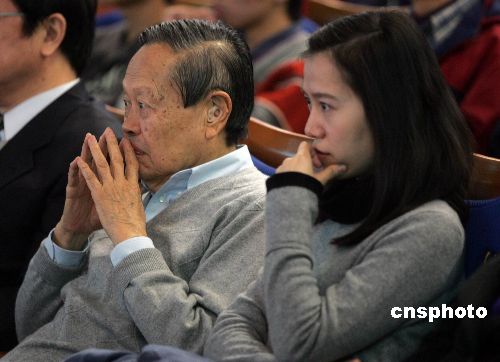 12月3日,數(shù)學(xué)大師陳省身逝世三周年紀(jì)念大會(huì)暨《陳省身與中國(guó)數(shù)學(xué)》新書(shū)首發(fā)儀式在天津舉行。諾貝爾獎(jiǎng)獲得者、著名華人學(xué)者楊振寧攜妻子翁帆出席紀(jì)念活動(dòng)。圖為楊振寧夫婦聆聽(tīng)陳省身先生女婿、著名物理學(xué)家、香港科技大學(xué)校長(zhǎng)朱經(jīng)武院士的主題演講,演講題為《陳省身先生與我》。中新社發(fā) 祁小龍 攝