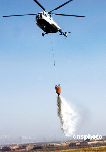 12月3日,一架印有“森林防火”字樣的直升機(jī),在洛陽龍門山森林公園連續(xù)進(jìn)行4個(gè)架次的吊桶灑水滅火訓(xùn)練。當(dāng)天河南省首次森林航空消防野外訓(xùn)練在洛陽舉行。中新社發(fā) 李從軍 攝