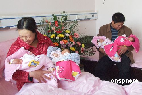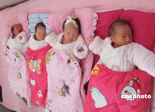 12月3日凌晨1時(shí)43分許,山西省臨汾市梁家莊33歲的婦女郭海霞剖宮產(chǎn)下“三鳳一龍”四個(gè)健康寶寶。在醫(yī)護(hù)人員的努力下,該產(chǎn)婦順利剖娩出重為2150克、2400克、2150克和1400克的龍鳳4胞胎,目前,4胞胎身體狀況良好,院方派出骨干醫(yī)護(hù)人員24小時(shí)全天監(jiān)護(hù)和喂養(yǎng)。中新社發(fā) 閆銳鵬 攝
