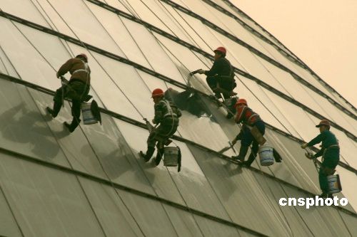 12月9日,北京清潔工人通過吊索懸掛設(shè)備清洗國家大劇院玻璃外殼上的塵埃。12月22日晚,國家大劇院將以其華麗的演出陣容拉開國際演出季的序幕。據(jù)悉,此次國家大劇院音樂廳開幕慶典將于12月22日至24日舉辦,包括兩場開幕慶典音樂會和一場歌劇精粹音樂會。目前,國家大劇院各項設(shè)施全部就位,正在進(jìn)行首輪演出前的最后準(zhǔn)備。中新社發(fā) 鄒憲 攝