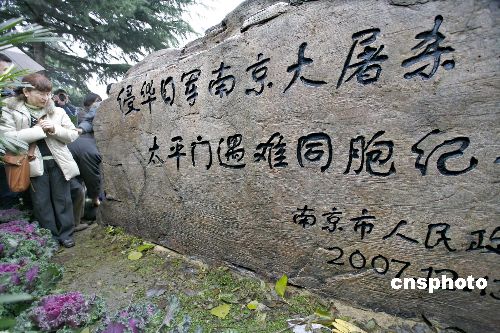 12月12日上午,侵華日軍南京大屠殺太平門遇難同胞紀(jì)念碑揭碑。這是南京市在全市建立的第19座南京大屠殺遇難同胞叢葬地紀(jì)念碑。南京市相關(guān)部門領(lǐng)導(dǎo)、日本“銘心會(huì)”訪華團(tuán)團(tuán)長松岡環(huán)女士及全體團(tuán)員、旅日華僑中日友好促進(jìn)會(huì)秘書長林伯耀先生以及群眾代表、中外媒體等參加了揭碑儀式。中新社發(fā) 祁恩芝 攝