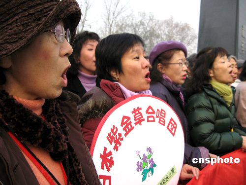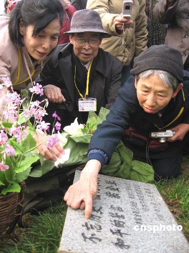 十二月十四日上午,日本友人在南京紫金草花園紀(jì)念碑前參加揭牌儀式。當(dāng)日,紫金草合唱團的一百五十一名友好人士,在侵華日軍南京大屠殺遇難同胞紀(jì)念館新館唱起和平歌曲,并將他們親手制作的紫金草紙花贈給新館。位于新館和平公園內(nèi)的紫金草花園由此正式揭牌。中新社發(fā) 朱曉穎