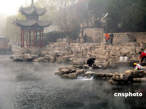 由于低溫和濕潤的空氣,12月20日,山東濟(jì)南眾泉出現(xiàn)“云霧潤蒸”景象,大片水汽從泉水和護(hù)城河水面升起。據(jù)悉,該景觀一般出現(xiàn)在冬季特殊天氣。中新社發(fā) 周青先 攝