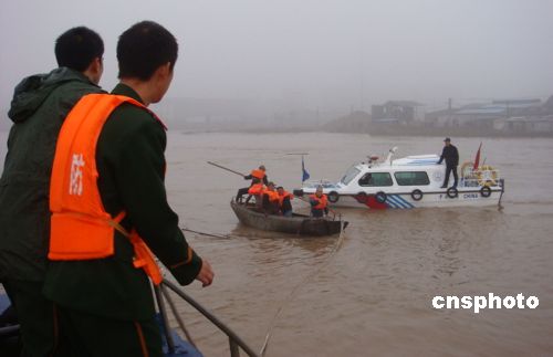 12月22日,“錦峰1號”貨輪在浙江瑞安飛云江沉沒。當(dāng)日晨6時30分許,“錦峰1號”貨輪運(yùn)載近千噸沙石返回浙江瑞安,在途經(jīng)飛云江大橋時,由于濃霧彌漫,能見度底,貨輪左弦與水下橋墩發(fā)生碰擦,致使左弦受損進(jìn)水,船員進(jìn)行緊急堵塞無效,后欲急速靠岸未果,船體迅速下沉。接報后的當(dāng)?shù)毓策叿馈⒑J虏块T迅速駕駛營救船艇趕赴現(xiàn)場,將失去動力的救生船上的五名船員安全轉(zhuǎn)移到岸上。中新社發(fā) 蔡寬元 攝