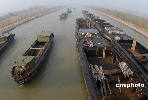 12月22日,上百艘船只開始過閘。當(dāng)日,被譽(yù)為“江北第一閘”的京杭運(yùn)河山東臺兒莊船閘汽笛爭鳴,百舸爭渡上演“過閘大戲”。由于連日濃霧,能見度不足20米,萬年船閘和臺兒莊船閘全線停止放船,上百艘船只滯留在航段內(nèi)。中新社發(fā) 高啟民 攝