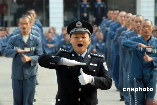 2007年12月26日,海南省瓊山監(jiān)獄舉行服刑人員“心靈手語操”比賽,7支代表隊(duì)共700多名服刑人員參賽,他們以此特別方式迎接即將到來的新年。服刑人員在手語操比賽的表演中,得到傳統(tǒng)文化的熏陶,增強(qiáng)了積極改造的信心。中新社發(fā) 善平 攝
