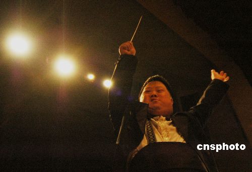 2008元旦之夜,《讓世界充滿愛》——“奇才指揮家”舟舟傾情指揮的大型新年交響音樂會在安徽巢湖舉行。委婉動(dòng)人的音樂令在場上千人領(lǐng)略了舟舟的指揮風(fēng)采,感受了交響樂的魅力,給步入新年的巢湖市民帶來了無數(shù)激情、夢想與歡樂。中新社發(fā) 徐振華 攝