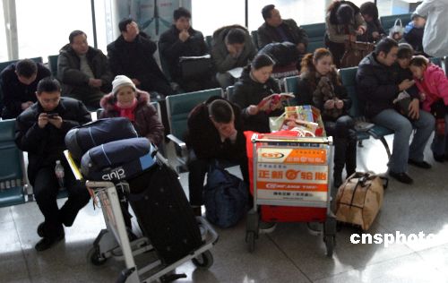 1月2日上午,烏魯木齊國際機(jī)場出現(xiàn)大霧天氣,致使部分航班延誤,數(shù)百名乘客滯留機(jī)場。記者從機(jī)場問訊處獲悉,因?yàn)豸斈君R國際機(jī)場被大霧籠罩,能見度不符合飛機(jī)降落標(biāo)準(zhǔn),成都—烏魯木齊、北京—烏魯木齊等國內(nèi)航班被迫備降敦煌機(jī)場,導(dǎo)致從烏魯木齊飛往成都和北京等地的乘客滯留機(jī)場。據(jù)了解,烏魯木齊到庫爾勒、伊寧等地的疆內(nèi)航班沒有受到影響,仍可正常起飛。截至發(fā)稿時,機(jī)場大霧仍未退去,乘客們?nèi)栽诘却鞖夂棉D(zhuǎn)。中新社發(fā) 李雄心 攝