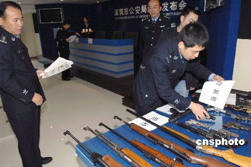 圖:深圳警方新年收繳管制刀具和仿真槍支