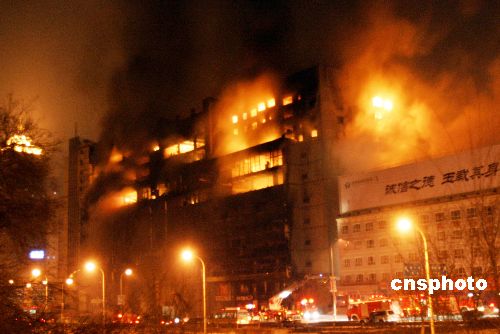 大火中的德匯國際廣場大樓。