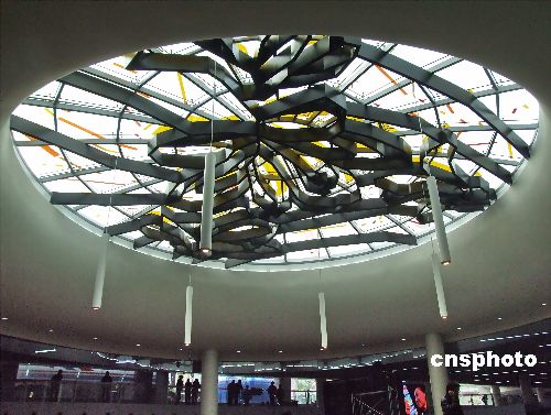 2008年1月7日消息,上海人民廣場站1、2、8號線三角地?fù)Q乘大廳的改造已于日前全部完工,其頂部采用全新鏤空設(shè)計,造型如一朵朵徐徐綻放的白玉蘭花。中新社發(fā) 井韋 攝