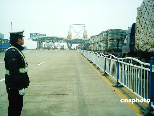 2008年1月22日,由于大橋路面積雪結冰和合(肥)巢(湖)蕪(湖)高速公路封路,安徽省蕪湖長江大橋暫停通行,滯留在蕪湖長江大橋南岸的車輛排成一條長約5公里的“長龍”,至少有3000多輛機動車受阻。中新社發(fā) 張發(fā)平 攝