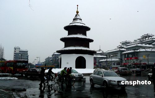 圖:江蘇揚州迎來冬雪 市內(nèi)交通秩序井然