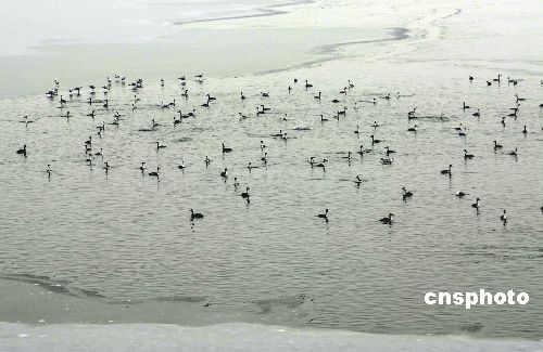 2007年1月29日,成群的越冬候鳥在武漢東湖上空傲翔。近幾年來,隨著武漢有關(guān)部門不斷加強(qiáng)東湖自然環(huán)境的治理,東湖的自然環(huán)境越來越好,多年不見的候鳥又回到東湖越冬。中新社發(fā) 楚天行 攝
