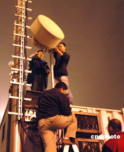 圖為廣州移動通訊運(yùn)營商在廣州火車站廣場啟動應(yīng)急通信設(shè)備,確保網(wǎng)絡(luò)暢通。
