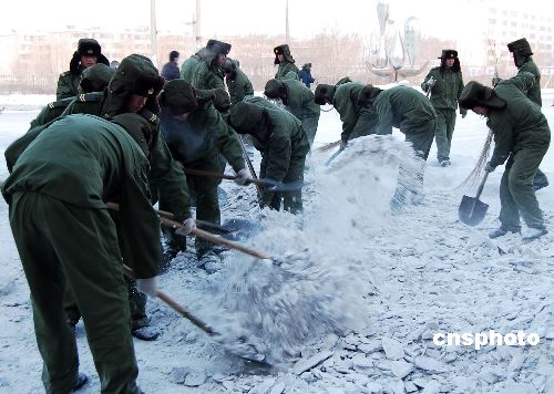 1月31日,解放軍官兵和交警在鏟除路面積雪。自1月12日以來,持續(xù)不斷的降雪、冰凍氣候,給河西走廊中部的甘肅臨澤縣人民生產生活和交通安全造成了嚴重影響。災情發(fā)生后,當地黨委政府積極采取多項措施,清除冰雪,確保道路交通安全暢通。中新社發(fā) 李自明 攝