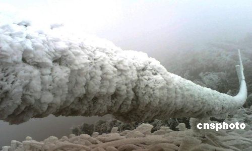 中國廣西最近遭遇嚴重雨雪冰凍災害,電力、通訊設施受到嚴重影響,圖為中國移動廣西公司在柳州市融安縣一個超負荷的移動光纜被冰雪凍結。中國移動廣西公司已啟動最高等級應急通信方案,全力保障通信網絡暢通,向重災區(qū)提供信息發(fā)布綠色通道和延遲停機等服務,為抗災救災提供通信保障。中新社發(fā) 申蓓 攝