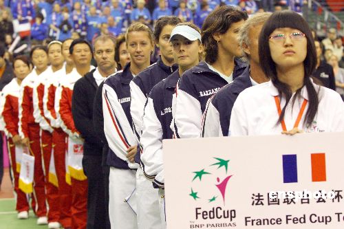 2月2日,2008聯(lián)合會杯網(wǎng)球賽世界組中國對法國的比賽在北京國際網(wǎng)球中心開幕。中新社發(fā) 富田 攝